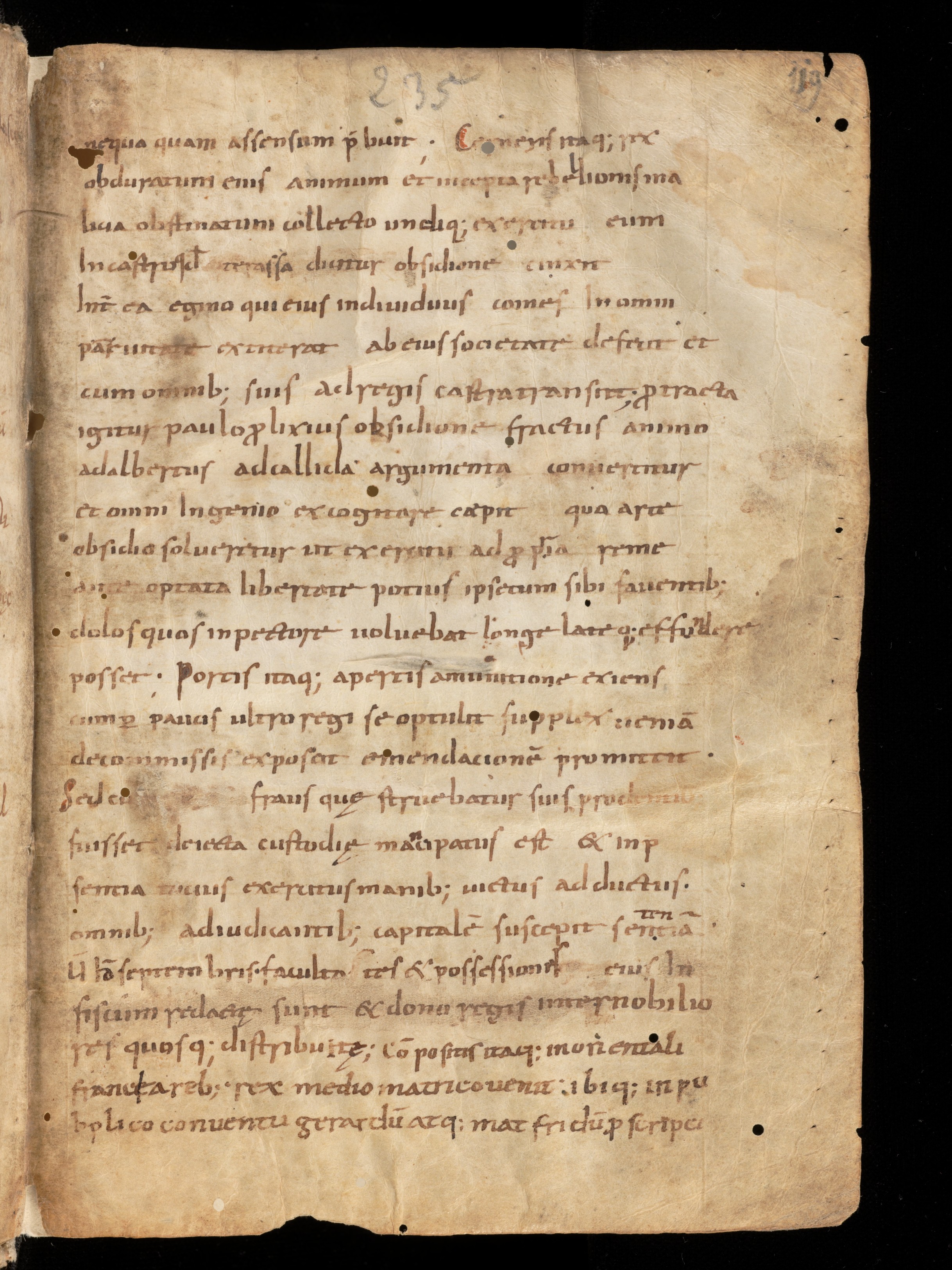 Cõ positis itaq; inorientali francea reb; rex medio matrico uenit ibiq; in pu bplico conuentu gerardũ atq; matfridũ ꝓ scripci